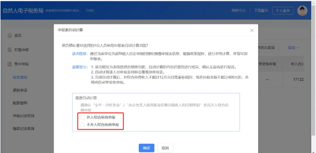 ✔5.自(zì)動計(jì)算(suàn)。人(rén)員(yuán)導入成功後,如(rú)果₩∑ε需要(yào)使用(yòng)單位預扣預繳申報(bà₩δ₩o)數(shù)據為(wèi)納稅人(rén)生(shēn→Ω÷←g)成申報(bào)表,可(kě)使用(yòng)✔ >₽【自(zì)動計(jì)算(suàn)】功能(néng)©↕₽。勾選需要(yào)自(zì)動計(jì)算(suàn)的(de)人(rén∞♥Ωβ)員(yuán),點擊【自(zì)動計(jì)算(suàn)】按鈕¶★,仔細閱讀(dú)提示內(nèi)容後,根據實際情況勾選是(shì)否将“↔≤δ全年(nián)一(yī)次性獎金(jīn)”等并入綜合所得(de),點擊【确定】按鈕即可(k∏•ě)進行(xíng)申報(bào)表的(de)¶ ✘自(zì)動填寫計(jì)算(suàn)。