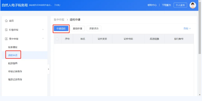 申報(bào)表報(bào)送成功後,符合退稅條件(jiàn)(應補(退)稅額為(wèi)負數("®↑shù))的(de)納稅人(rén),您可(kě)以集中辦理(lǐ)退稅申請(qǐng)。