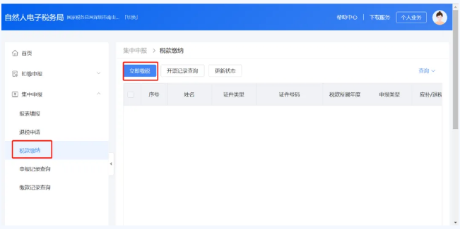 ✔1.點擊左側【稅款繳納】,補繳稅款。