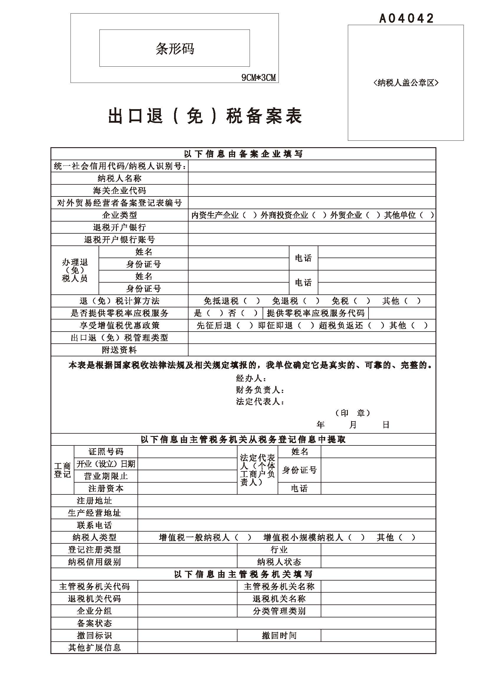 《出口退(免)稅備案表》