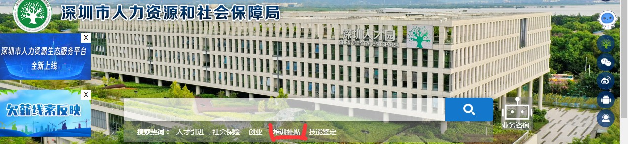 第一(yī)步:登錄深圳市(shì)人(rén)力資源和(h×₩∑é)社會(huì)保障局網站(zhàn):https://hrss.sz.gov.cn/ ,找到(dào)培訓補貼點進去(qù)。如(rú)₩¥§下(xià)圖: