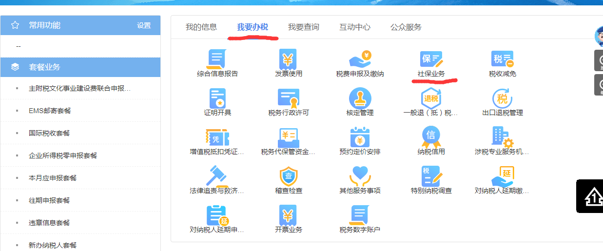 第二步:點“我要(yào)辦稅”——”社保業(yè)務“
