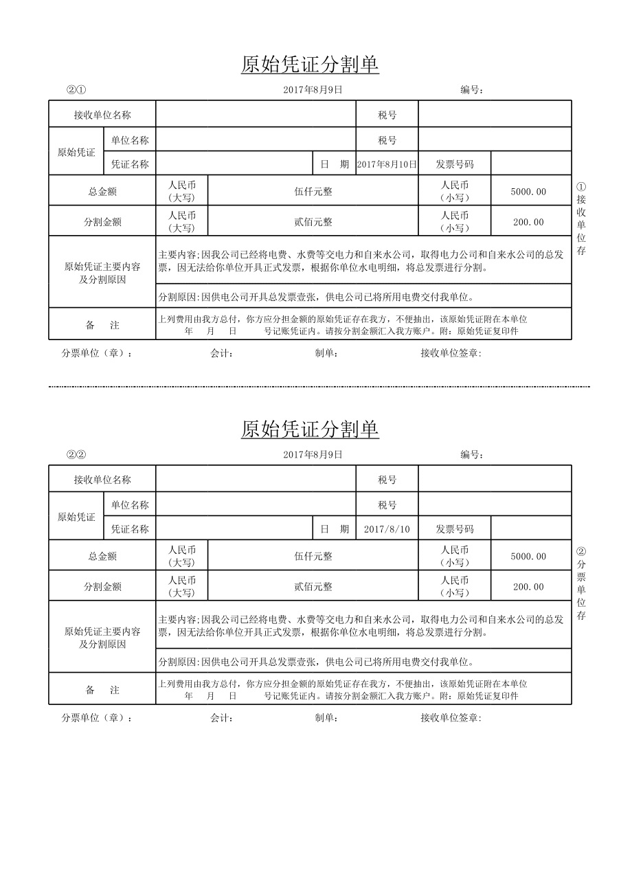 發票(piào)分(fēn)割單樣版(僅供參考)