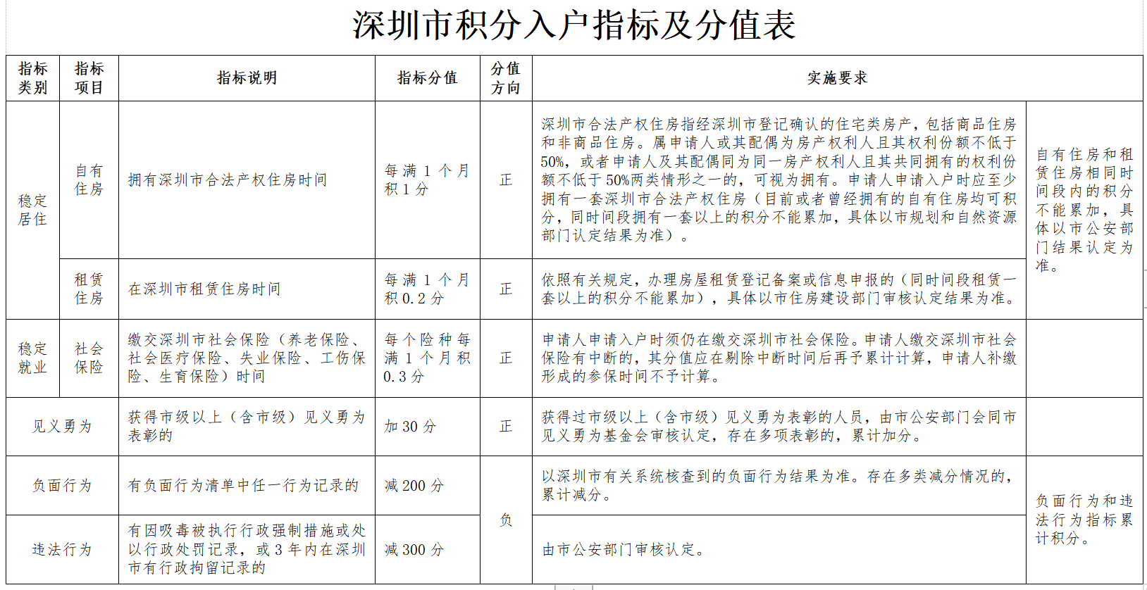 深圳市(shì)積分(fēn)入戶指标及分(fēn)值表