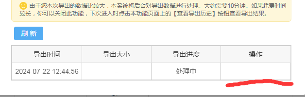 第五步:導出進度為(wèi)”處理(lǐ)中“過1-5分(fēn)鐘(zhōngπ')點”刷新“查看(kàn)進度,如(rú)果還(hái)是(shì)處理(lǐ)中再過≤↕$幾分(fēn)鐘(zhōng)點”刷新“
